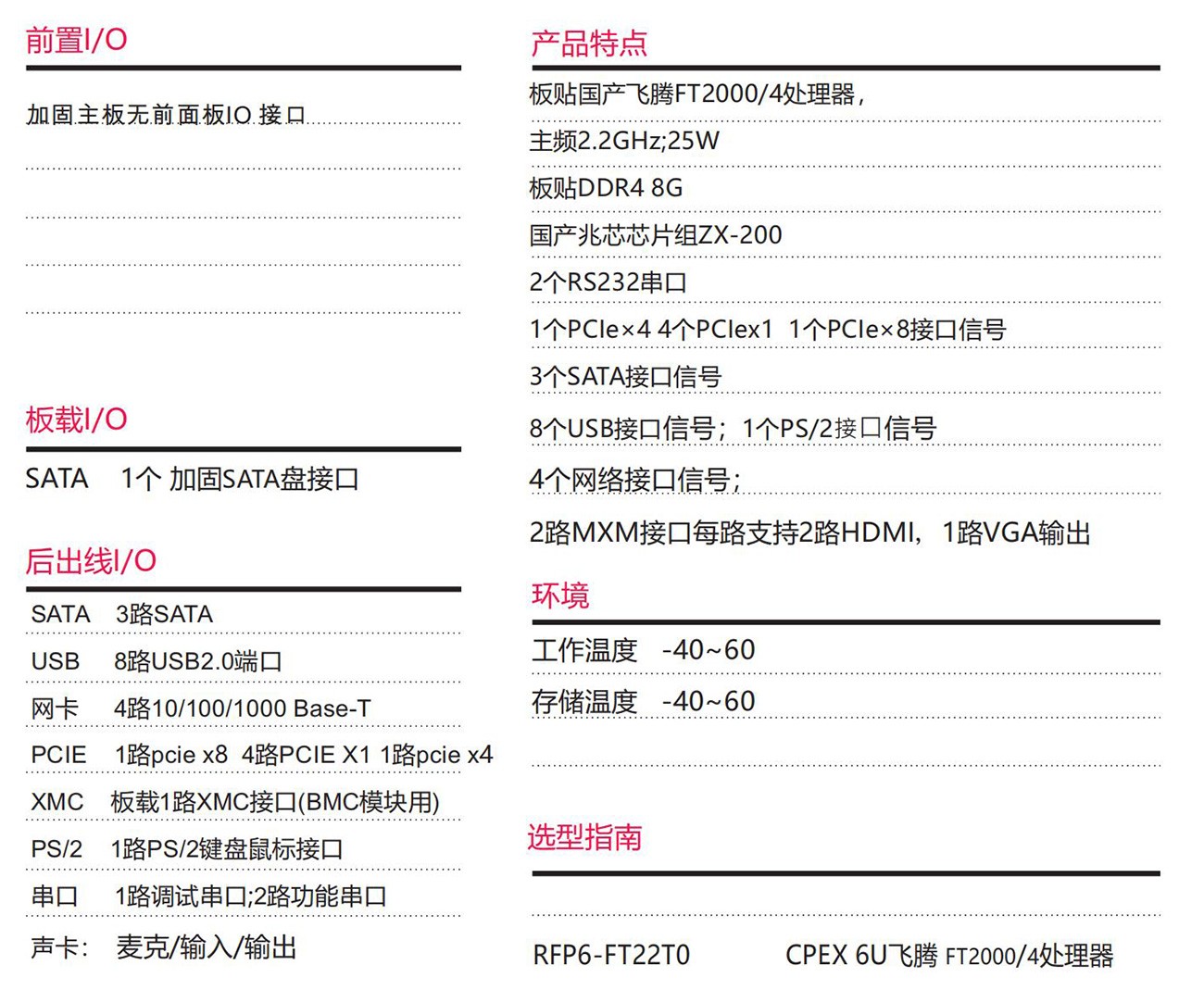 采用國產(chǎn)飛騰處理器+ZX-200芯片組按國產(chǎn)化100% 設(shè)計設(shè)計,6U CPEX規(guī)格。具備豐富的外圍接口;設(shè) 計了高效的散熱系統(tǒng),可顯著提高處理器的浮點運算 性能,以太網(wǎng)、PCIe、支持高帶寬數(shù)據(jù)傳輸,滿足視頻采集與處理、雷達(dá)和聲吶等應(yīng)用對高速數(shù)據(jù)傳輸?shù)囊?。專為惡劣環(huán)境使用而設(shè)計,滿足無人機(jī)、裝甲 車、水面艦艇等軍工領(lǐng)域。
