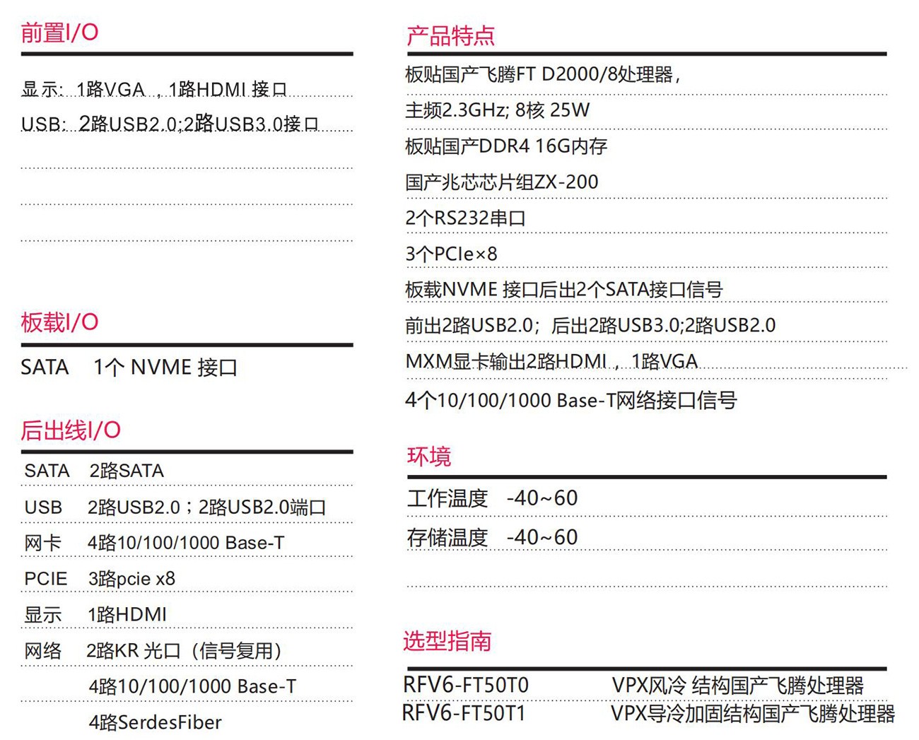 采用國產(chǎn)飛騰處理器FTD2000/8+ZX-200芯片組按國產(chǎn)設(shè)計,6U VPX規(guī)格。具備豐富的外圍接口;設(shè)計了高效 的散熱系統(tǒng),可顯著提高處理器的浮點運(yùn)算性能,以太網(wǎng)、PCIe、支持高帶寬數(shù)據(jù)傳輸,滿足視頻采集與處理、 雷達(dá)和聲吶等應(yīng)用對高速數(shù)據(jù)傳輸?shù)囊?。專為惡劣環(huán)境 使用而設(shè)計,滿足無人機(jī)、裝甲車、水面艦艇等軍工領(lǐng) 域。