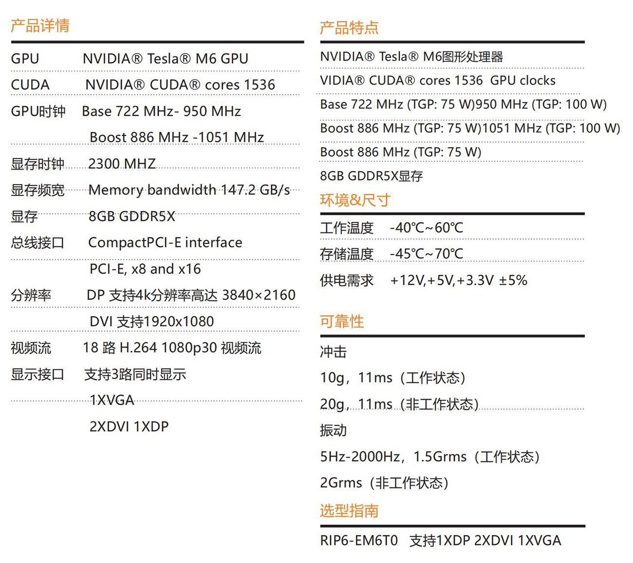 一款CPCI-E發(fā)燒級(jí)獨(dú)立顯卡,采用NVIDIA? Tesla? M6 圖形加速器 芯 片 設(shè) 計(jì) , NVIDIA? Tesla? M6 GPU Memory clock 2300 MHz為 256Bit 8GB GDDR5顯 存 ; 具 有 出 色 多 顯 示 輸 出 接 口 、 NVIDIA? Tesla? M6 GPU 加速器針對(duì)刀片式服務(wù)器進(jìn)行了優(yōu)化,能 為數(shù)據(jù)中心的虛擬工作站、桌面和應(yīng)用程序提供高性能圖形。該加速器 與 NVIDIA GRID? 軟件無(wú)縫地配合工作 ,可使企業(yè)虛擬化包括專業(yè)圖形 應(yīng)用程序在內(nèi)的眾多應(yīng)用程序,并將這些應(yīng)用程序傳輸?shù)皆O(shè)備中,該產(chǎn)品有良好計(jì)算和圖形性能。